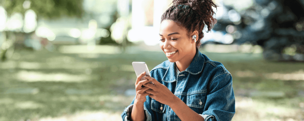 A young adult buying life insurance on her phone.